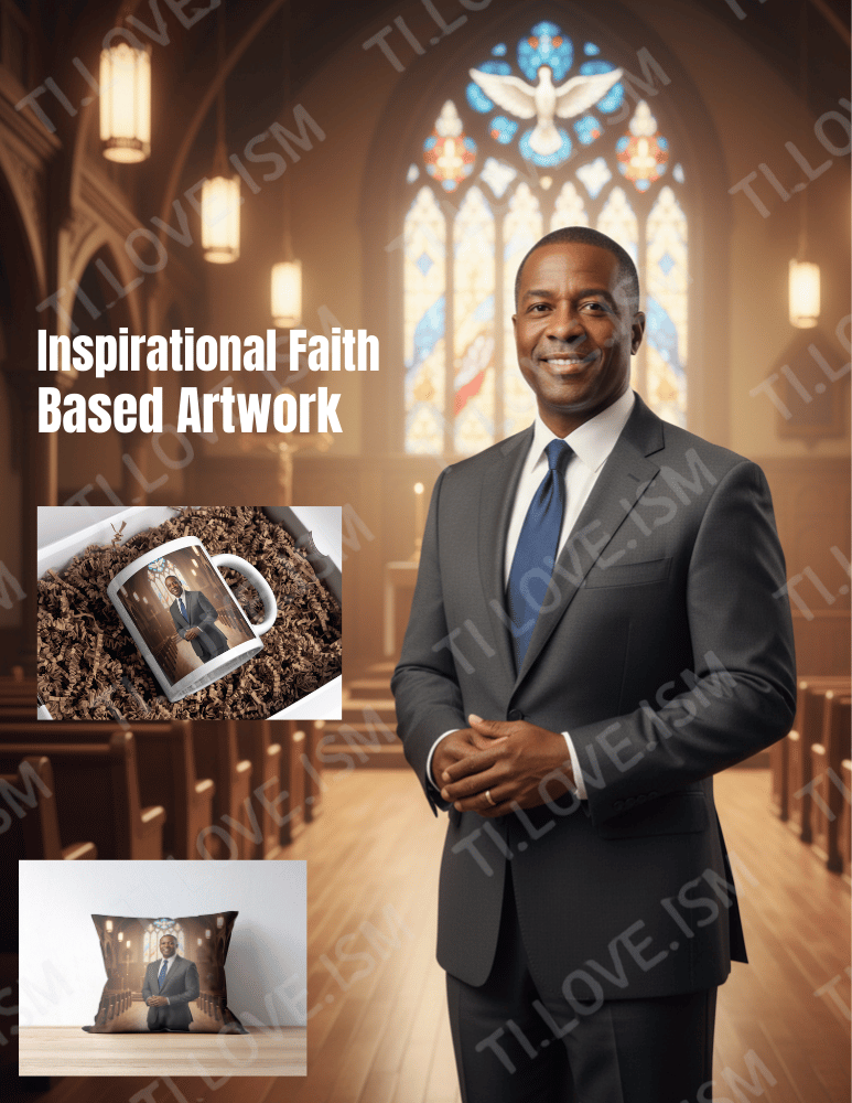 Bring faith and inspiration into your space with this digital artwork of a pastor standing strong inside a beautiful church. Perfect for spiritual wall art, church programs, flyers, or faith-based apparel.